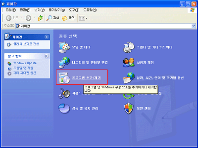 - 윈도우 시작 버튼을 클릭하신 후 제어판에서 프로그램 추가/삭제를 선택합니다.