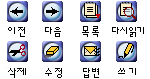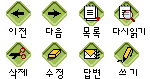 게시판의 아이콘을 자신이 원하는 것으로 언제든지 마음대로 바꿀 수 있습니다. 다음 12가지 아이콘 세트 중 원하는 것을 누른 뒤 하드디스크에 저장하십시오. 내려받기(download)가 끝난 뒤 "열기"(Open)를 누르면 자동으로 압축이 풀리면서 icon이라는 디렉토리가 생깁니다. 이 디렉토리에 있는 .gif 파일을 FTP를 사용하여 "자신의도메인/board/icon" 디렉토리에 덮어쓰면 게시판의 모든 아이콘이 변경됩니다.