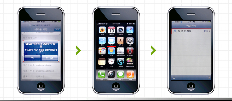 | 웹메일은 대표적인 스마트폰인 아이폰에서도 손쉽게 즐길 수 있습니다. 다음은 아이폰에서 웹메일 설정 후, 수신된 메일을 확인할 수 있는 방법에 대한 안내입니다. |