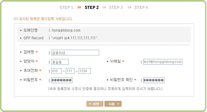 담당자 : 화이트 도메인을 관리할 담당자명을 입력해 주십시오. |