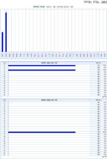 1. 회원통계(월별) : 월별 회원 가입자 수를 그래프를 통해서 손쉽게 볼 수 있습니다. 한 달의 일별로 회원 가입자 수를 상세히 볼 수 있습니다.