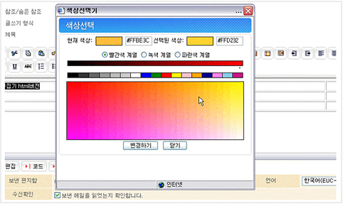 색상코드 값을 외울 필요없이 위지윅으로 색상을 선택할 수 있습니다. |